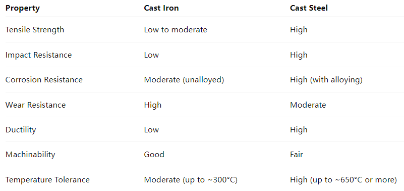เมื่อพูดถึงประสิทธิภาพทางกล เหล็กหล่อมีประสิทธิภาพเหนือกว่าเหล็กหล่อในเกือบทุกด้าน เหล็กหล่อมีความต้านทานแรงดึง ทนต่อแรงกระแทก และความเหนียวสูงกว่า คุณสมบัติเหล่านี้ทำให้เหมาะสมอย่างยิ่งสำหรับสภาพแวดล้อมที่มีแรงดันสูงและอุณหภูมิสูง รวมถึงการใช้งานที่ต้องได้รับแรงกระแทกทางกลและการสั่นสะเทือน