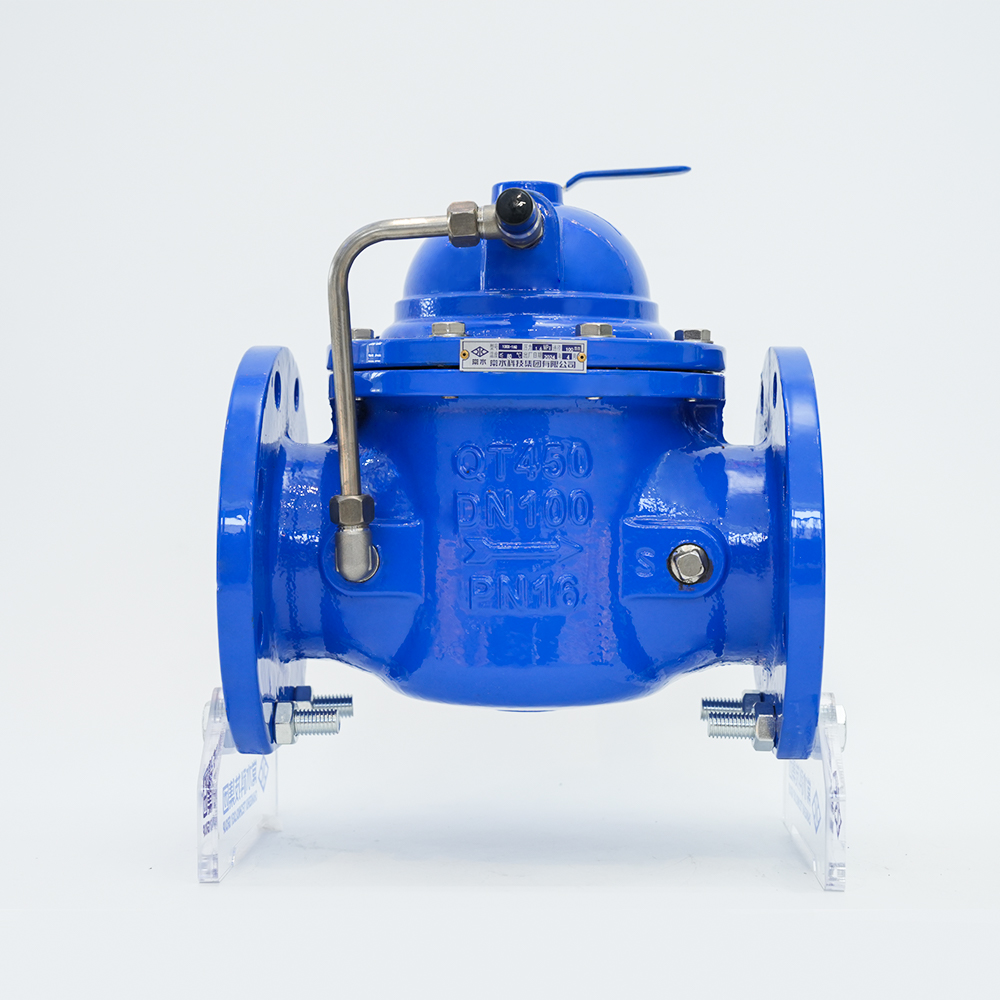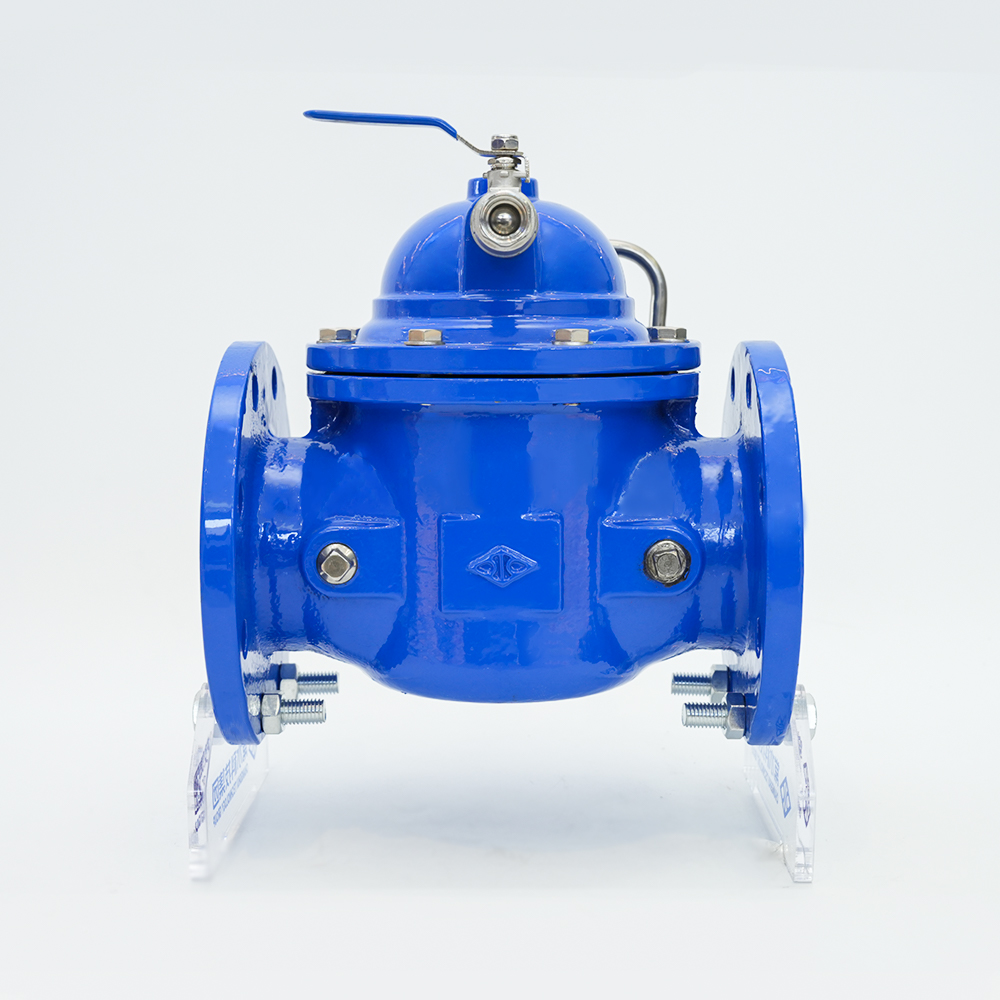 วาล์วควบคุมไฮดรอลิกเป็นวาล์วที่ควบคุมโดยแรงดันน้ำ ประกอบด้วยวาล์วหลักและท่อร้อยสายที่ต่ออยู่ วาล์วไพลอต วาล์วเข็ม บอลวาล์ว และเกจวัดความดัน ขึ้นอยู่กับวัตถุประสงค์ ฟังก์ชั่น และสถานที่ใช้งาน มันสามารถพัฒนาเป็นวาล์วลูกลอยควบคุมระยะไกล วาล์วลดความดัน เช็ควาล์วที่ปิดช้า วาล์วควบคุมการไหล วาล์วระบายความดัน วาล์วควบคุมไฟฟ้าไฮดรอลิก ฯลฯ วาล์วควบคุมไฮดรอลิกแบ่งออกเป็นประเภทไดอะแฟรมและประเภทลูกสูบ หลักการทำงานของพวกเขาเหมือนกัน ขับเคลื่อนโดยความแตกต่างของแรงดัน SP ระหว่างต้นน้ำและปลายน้ำ และควบคุมโดยวาล์วนำร่อง เพื่อให้ไดอะแฟรม (ลูกสูบ) ทำงานแบบไฮดรอลิกที่แตกต่างกัน และถูกปรับโดยอัตโนมัติโดยระบบไฮดรอลิกทั้งหมด แผ่นวาล์วหลักเปิดสุดหรือปิดสุดหรืออยู่ในสถานะควบคุม เมื่อแรงดันน้ำเข้าสู่ห้องควบคุมเหนือไดอะแฟรม (ลูกสูบ) ถูกปล่อยออกสู่บรรยากาศหรือบริเวณแรงดันต่ำด้านท้ายน้ำ ค่าความดันที่กระทำที่ด้านล่างของแผ่นวาล์วและด้านล่างของไดอะแฟรมจะมากกว่าค่าความดันด้านบน ดังนั้นแผ่นวาล์วหลักจึงถูกผลักให้อยู่ในตำแหน่งเปิดเต็มที่ เมื่อน้ำแรงดันเข้าสู่ห้องควบคุมเหนือไดอะแฟรม (ลูกสูบ) ไม่สามารถระบายออกสู่บรรยากาศหรือบริเวณแรงดันต่ำด้านท้ายน้ำได้ ซึ่งเป็นแรงที่กระทำต่อลูกสูบไดอะแฟรม (ลูกสูบ)) ค่าความดันด้านบนมากกว่าค่าความดันด้านล่าง ดังนั้นแผ่นวาล์วหลักจะถูกกดไปที่ตำแหน่งปิดสนิท เมื่อค่าความดันในห้องควบคุมเหนือไดอะแฟรม (ลูกสูบ) อยู่ระหว่างความดันขาเข้าและความดันทางออก แผ่นวาล์วหลักจะอยู่ในสถานะการปรับ และตำแหน่งการปรับจะขึ้นอยู่กับผลการควบคุมการเชื่อมโยงของวาล์วเข็มและวาล์วนำร่องแบบปรับได้ในระบบท่อร้อยสาย วาล์วไพล็อตแบบปรับได้สามารถเปิดหรือปิดพอร์ตวาล์วเล็กๆ ของตัวเองผ่านแรงดันทางออกด้านท้ายน้ำและเปลี่ยนตามไปด้วย จึงเป็นการเปลี่ยนความดันที่ควบคุมเหนือไดอะแฟรม (ลูกสูบ) และควบคุมตำแหน่งการปรับของจานวาล์วหลัก